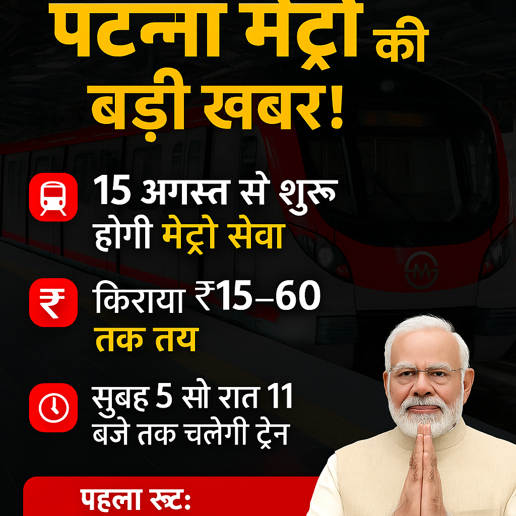 Patna Metro : किराया 15 से 60 रुपये तक, 15 अगस्त से शुरू होगी सेवा